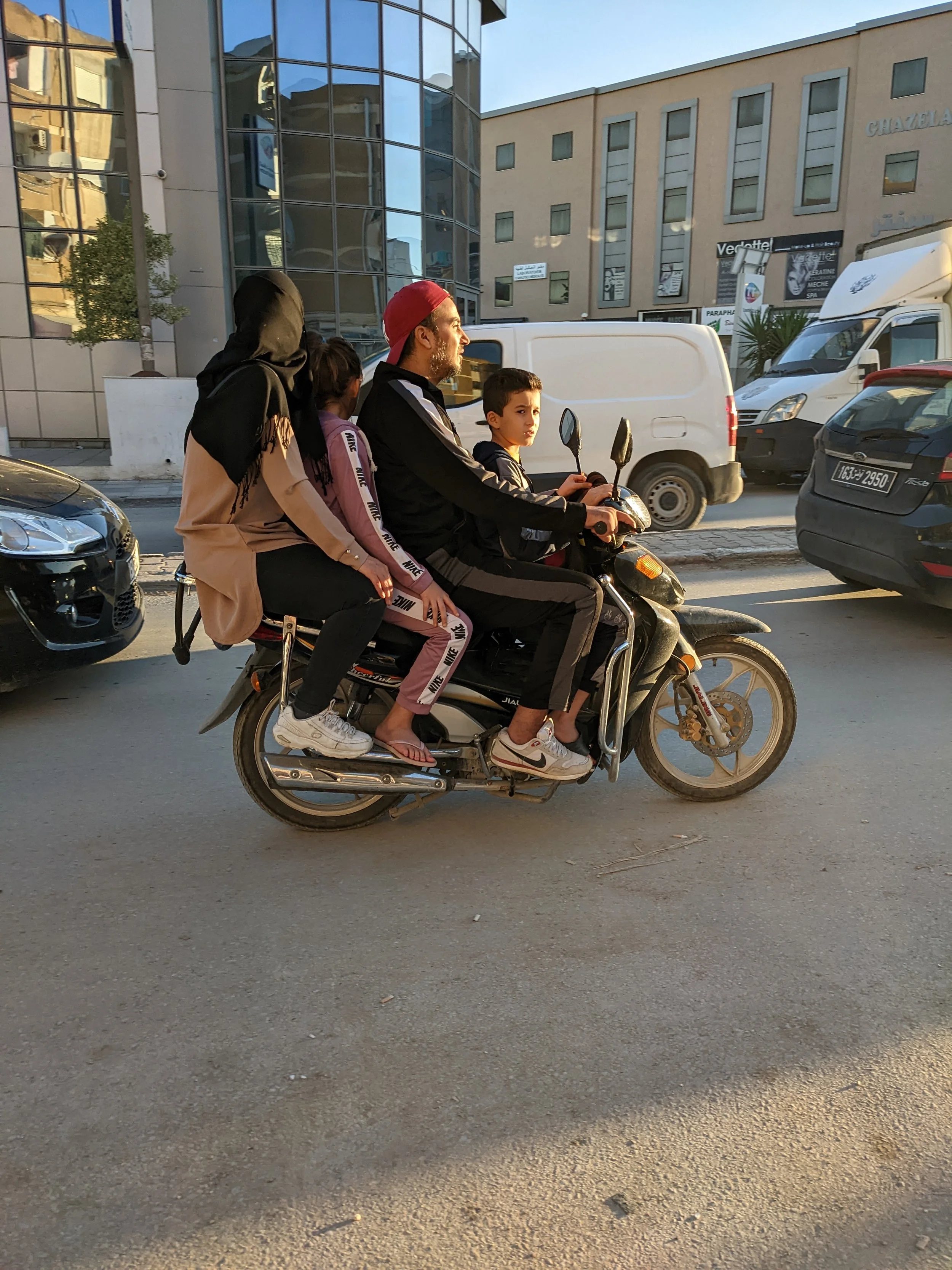 Driving laws are just a tad more lax than back home. I won’t even post the picture I took of how we drove around Tunisia for a full day, because American CPS would come knocking on our door immediately.